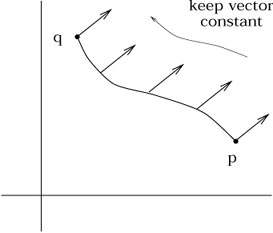 --> Etant donn� un tenseur en un point d'une courbe, il n'y a qu'une seule possibilit� de d�placer le tenseur le long de la courbe.